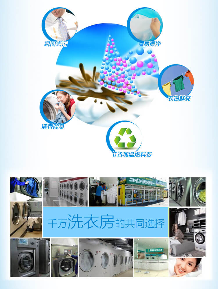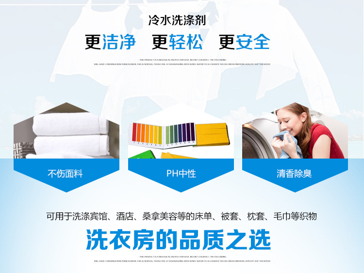 使用說明:每100公斤干布草重量用100-200克,50℃以上洗5分鐘。